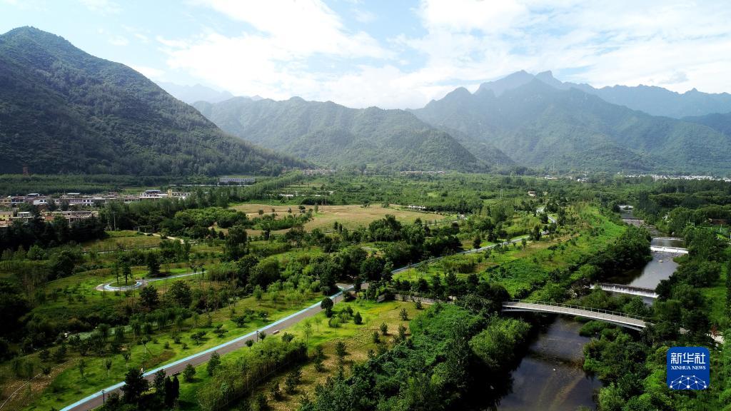 这是2019年7月26日拍摄的陕西省西安市长安区秦岭违建别墅拆除后建设的秦岭和谐森林公园(无人机照片)。新华社记者 刘潇 摄