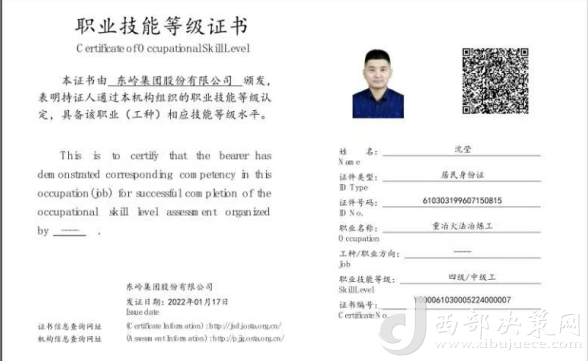 沈莹,是东岭冶炼公司的一名技术员,去年11月,他通过参加公司举办的新型学徒制培训班,考取了“重冶火法冶炼工”中级工职业技能等级证书,不仅得到了政府1500元奖励补贴,还在今年3月被公司从技术员提拔为车间技术副主任助理。