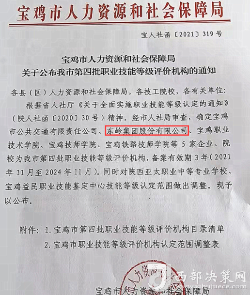 据悉,东岭集团技能等级评价机构在做好企业内部技能人才评价的同时,还以职业技能等级评价机构为依托,为宝鸡市技能人才就业提供相关服务。(邱晨)