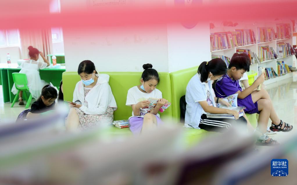 8月3日,在河南省洛阳市汝阳县图书馆少儿阅读室,学生们在阅读书籍。新华社发(康红军 摄)