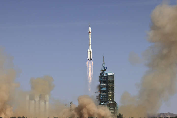 2022年6月5日,搭载神舟十四号载人飞船的长征二号F遥十四运载火箭,在酒泉卫星发射中心点火发射。新华社记者 李刚 摄