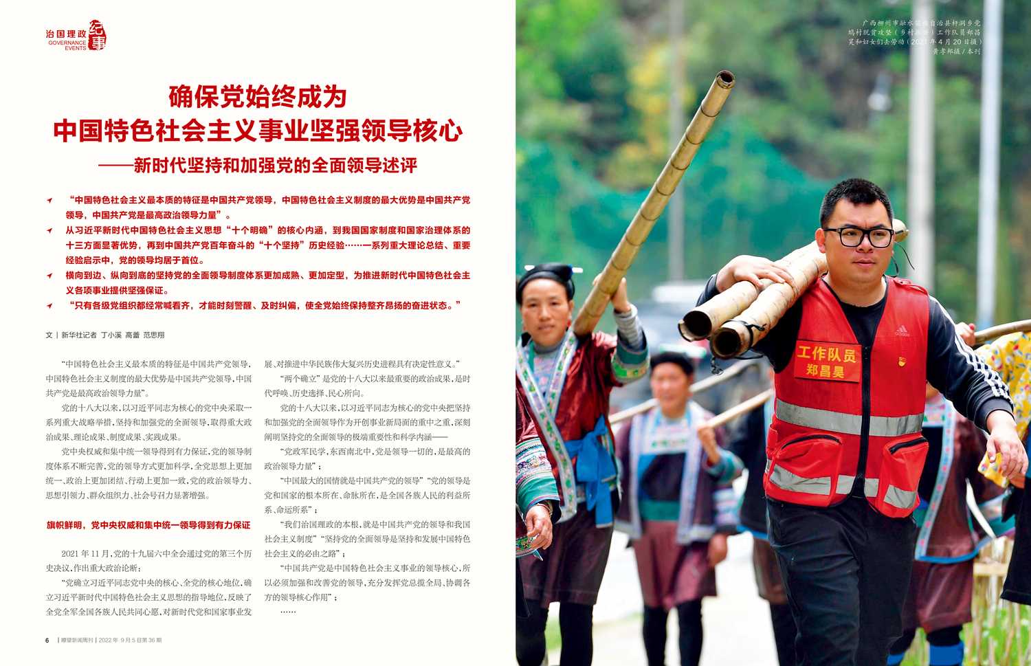 从习近平新时代中国特色社会主义思想“十个明确”的核心内涵,到我国国家制度和国家治理体系的十三方面显著优势,再到中国共产党百年奋斗的“十个坚持”历史经验……一系列重大理论总结、重要经验启示中,党的领导均居于首位。