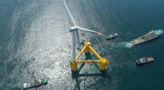 国内首台深远海浮式风电装备“扶摇号”从茂名广港码头拖航前往罗斗沙海域进行示范应用(2022 年 5 月 29 日摄 )刘大伟摄 / 本刊