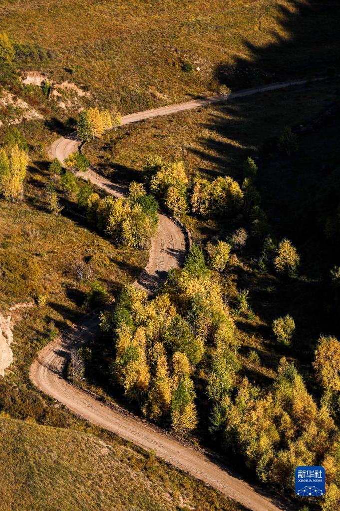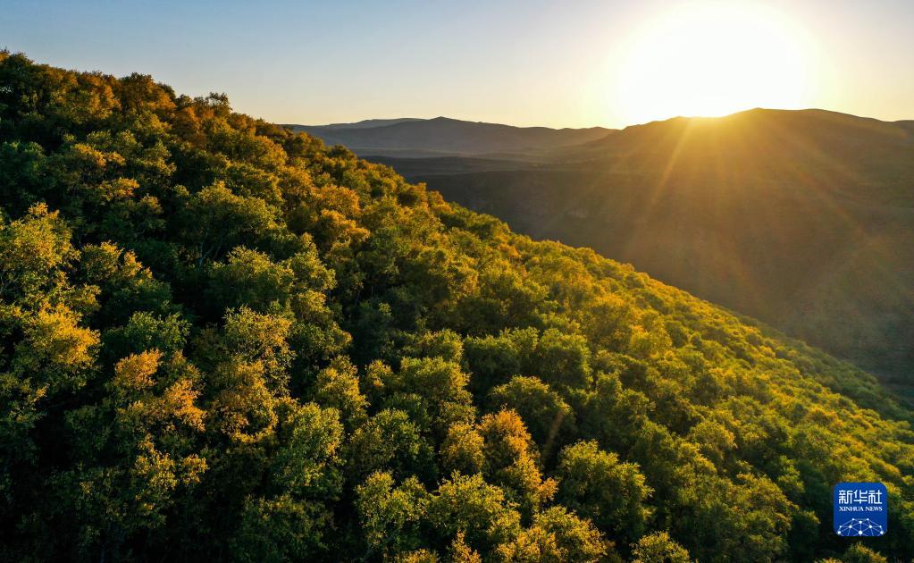 9月13日拍摄的呼和浩特市大青山秋日景色(无人机照片)。新华社记者 连振 摄
