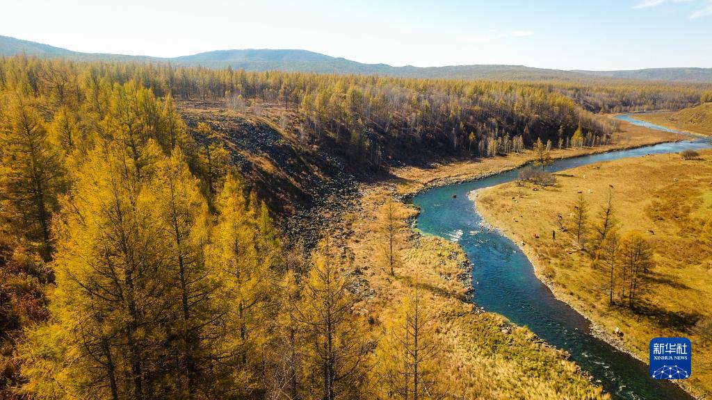 这是9月21日拍摄的阿尔山国家森林公园中不冻河的自然风光(无人机照片)。新华社记者 彭源 摄