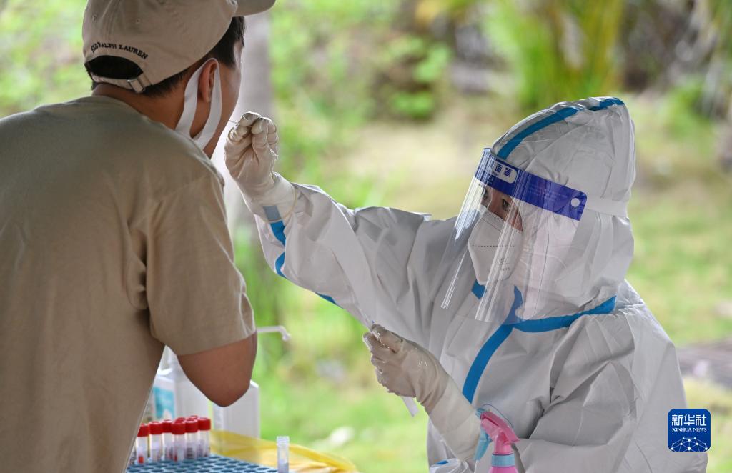 防疫人员在云南省瑞丽市友谊社区为居民进行核酸检测(2021年7月8日摄)。新华社记者 王冠森 摄