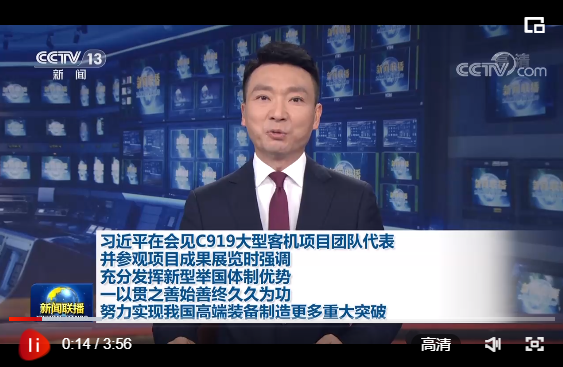 随后,习近平等来到人民大会堂河北厅,参观C919大型客机项目成果展览,听取大型客机设计、制造、试验、试飞、适航等有关方面的介绍。习近平不时驻足察看,详细询问有关情况。