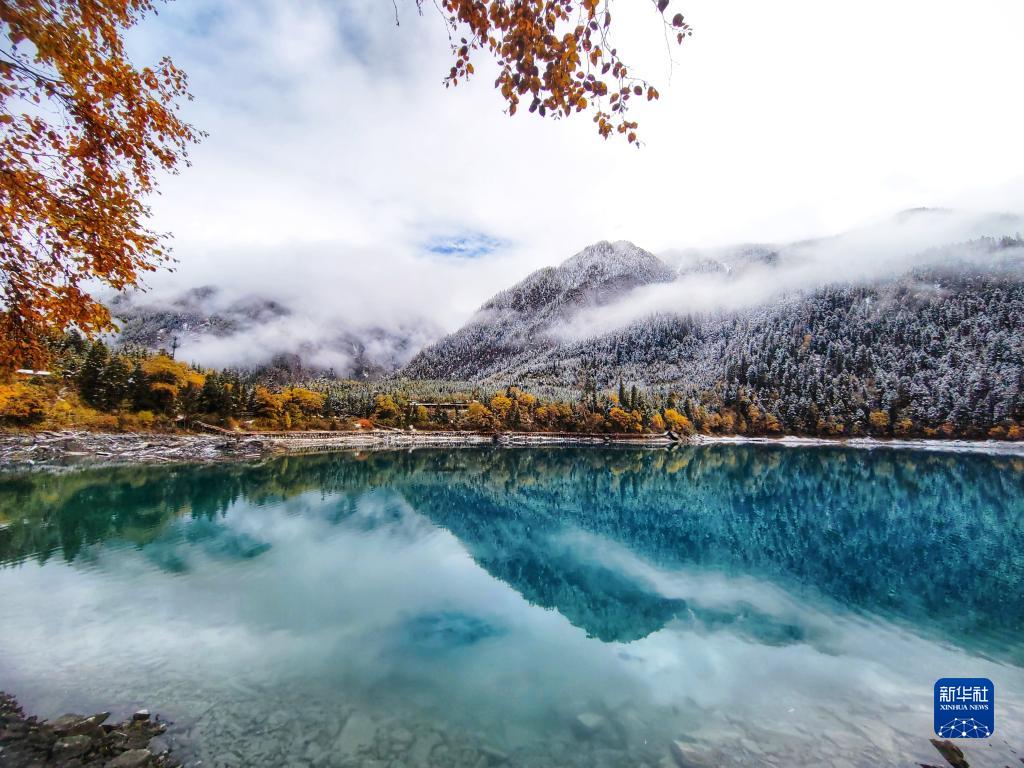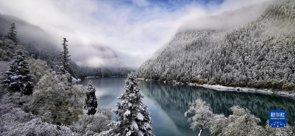 这是10月7日在世界自然遗产地九寨沟拍摄的雪后景色。新华社发(梁枫 摄)