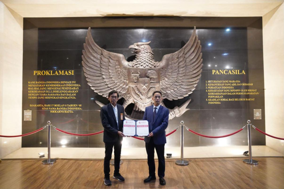 图为印尼总统博物馆出具证书将西凤酒永久珍藏