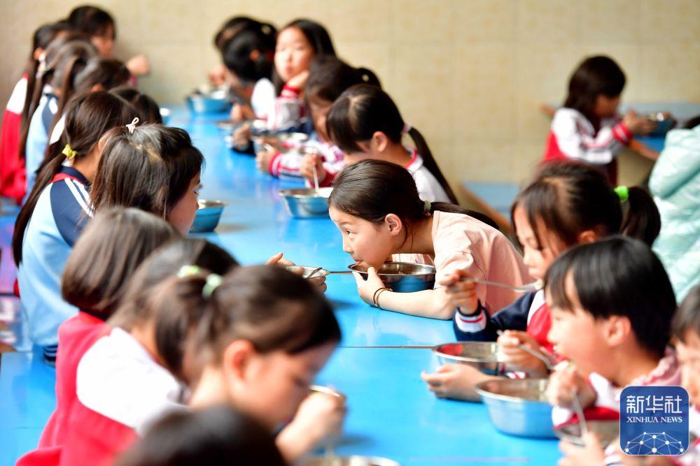 “过去,有的学生上学要走三四公里的山路,吃午饭很不方便。农村义务教育学生营养改善计划实施以来,在学校吃得越来越好,学生们个子更高了、身体更壮了!”宁夏回族自治区固原市西吉县马建乡大坪小学校长李鸣高兴地说。
