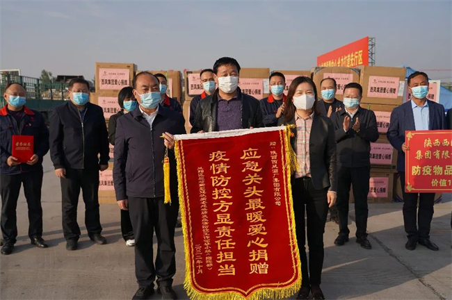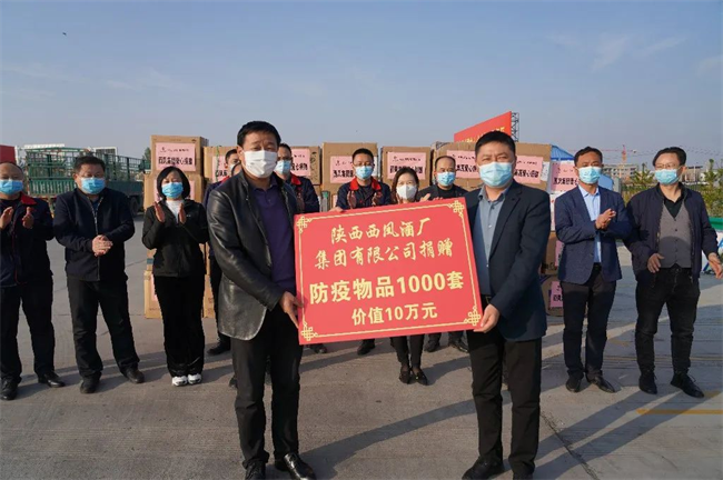 仪式上,西凤集团公司向凤翔区新冠疫情工作领导小组捐赠了价值10万元的防疫物资1000套。