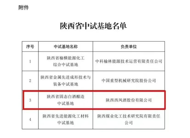 西部决策网讯(记者艾米杰 韩宗宪 通讯员马迪 吴婷兰)近日,陕西省科技厅公布了首批支持建设的省级中试基地名单,陕西西凤酒股份有限公司“陕西省固态白酒酿造中试基地”项目成功获批并获得建设经费500万元。