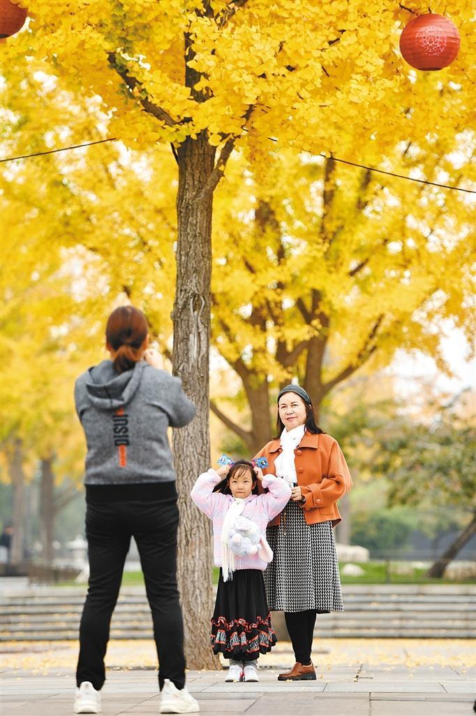 公园里、道路旁、古塔前……满城尽带“黄金甲”。远观犹如天际升起的一抹金色霞光,近看会发现叶片随风摇曳,述说着自然的力量。银杏叶簌簌飘落,为大地铺上金黄色的地毯,温暖治愈,它们最终也会化为土壤,用尽最后的生命来装点这个季节。