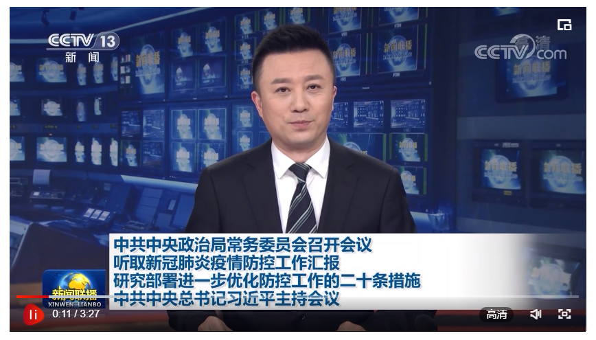 中共中央政治局常务委员会召开会议 听取新冠肺炎疫情防控工作汇报 研究部署进一步优化防控工作的二十条措施 中共中央总书记习