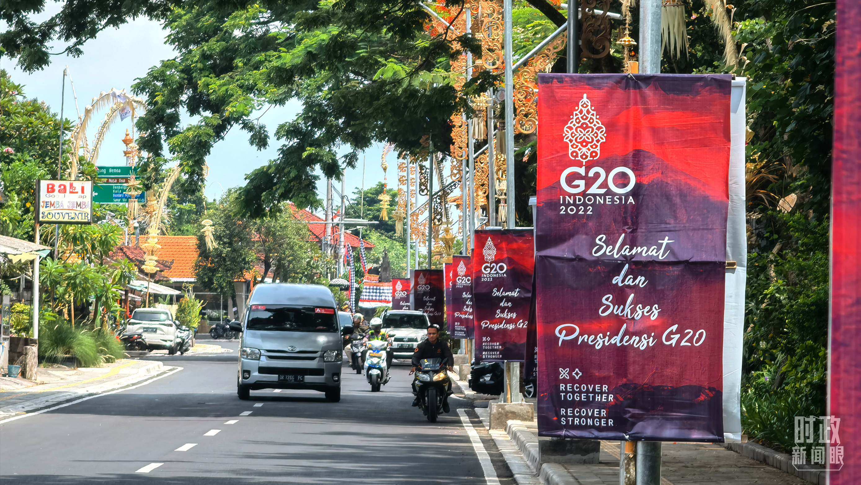 △巴厘岛大街上的峰会宣传展板。(总台央视记者韩锐拍摄)
