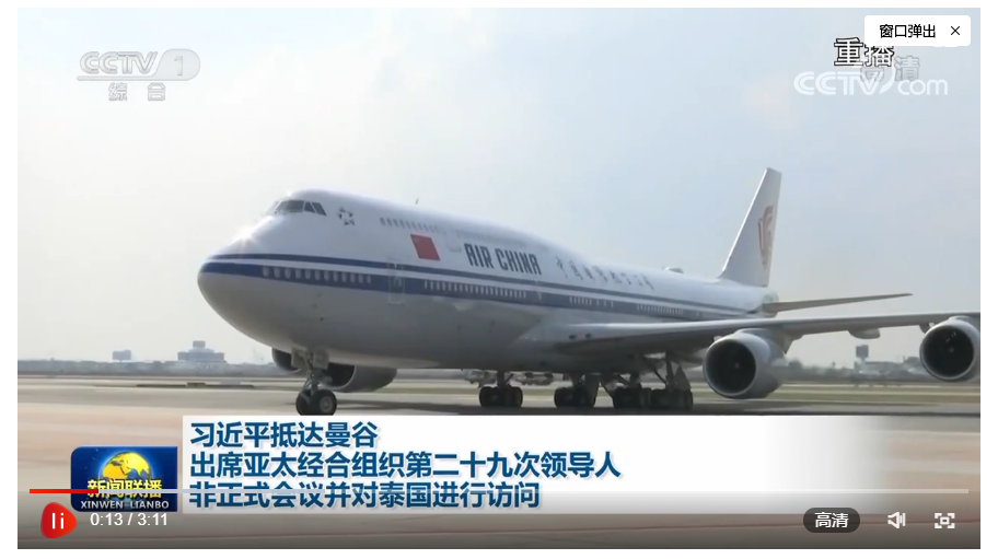当地时间11月17日下午,国家主席习近平乘专机抵达泰国曼谷,出席亚太经合组织第二十九次领导人非正式会议并对泰国进行访问。