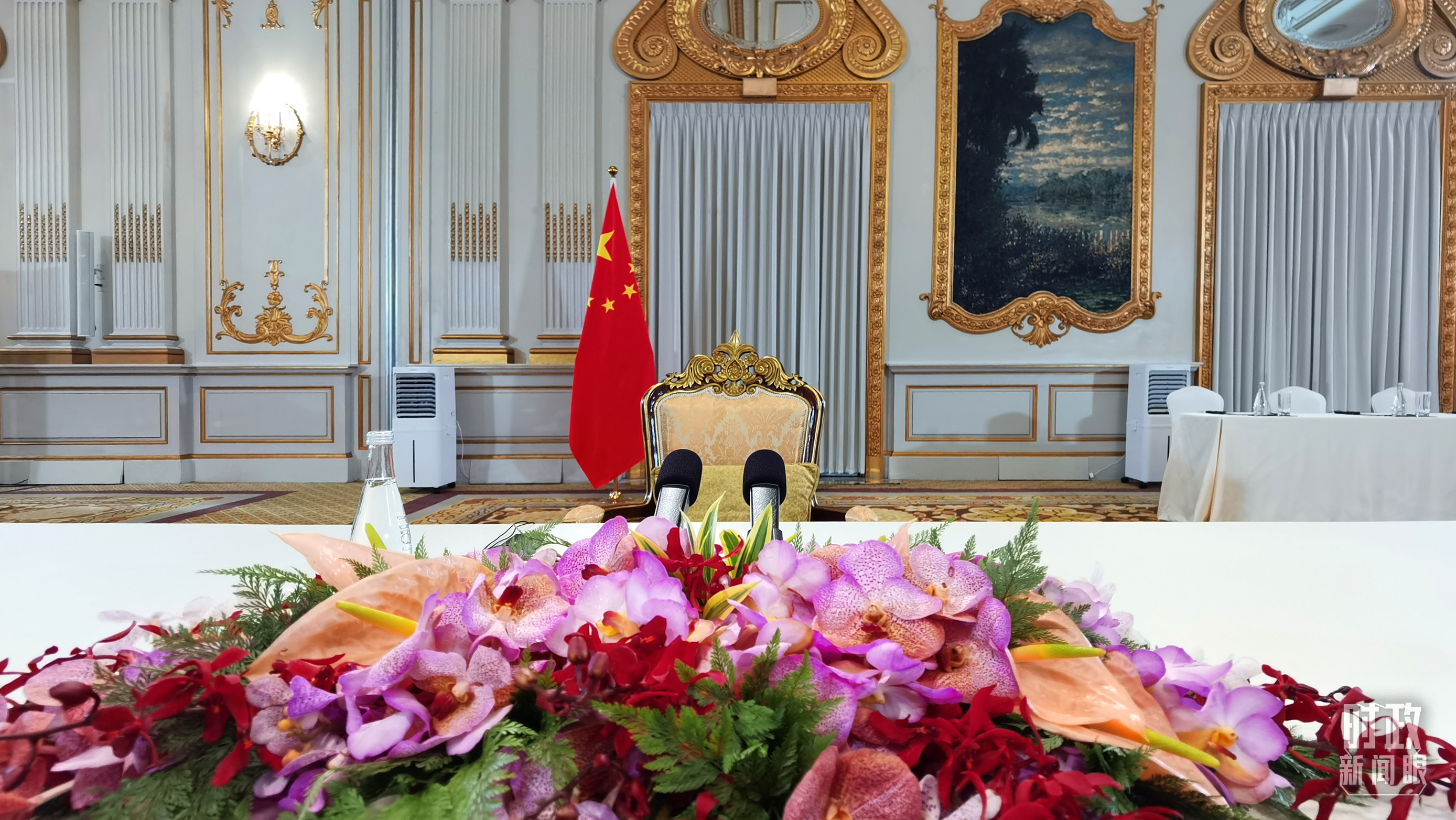 △中文会见开始前的现场。(总台央视记者郭鸿拍摄)