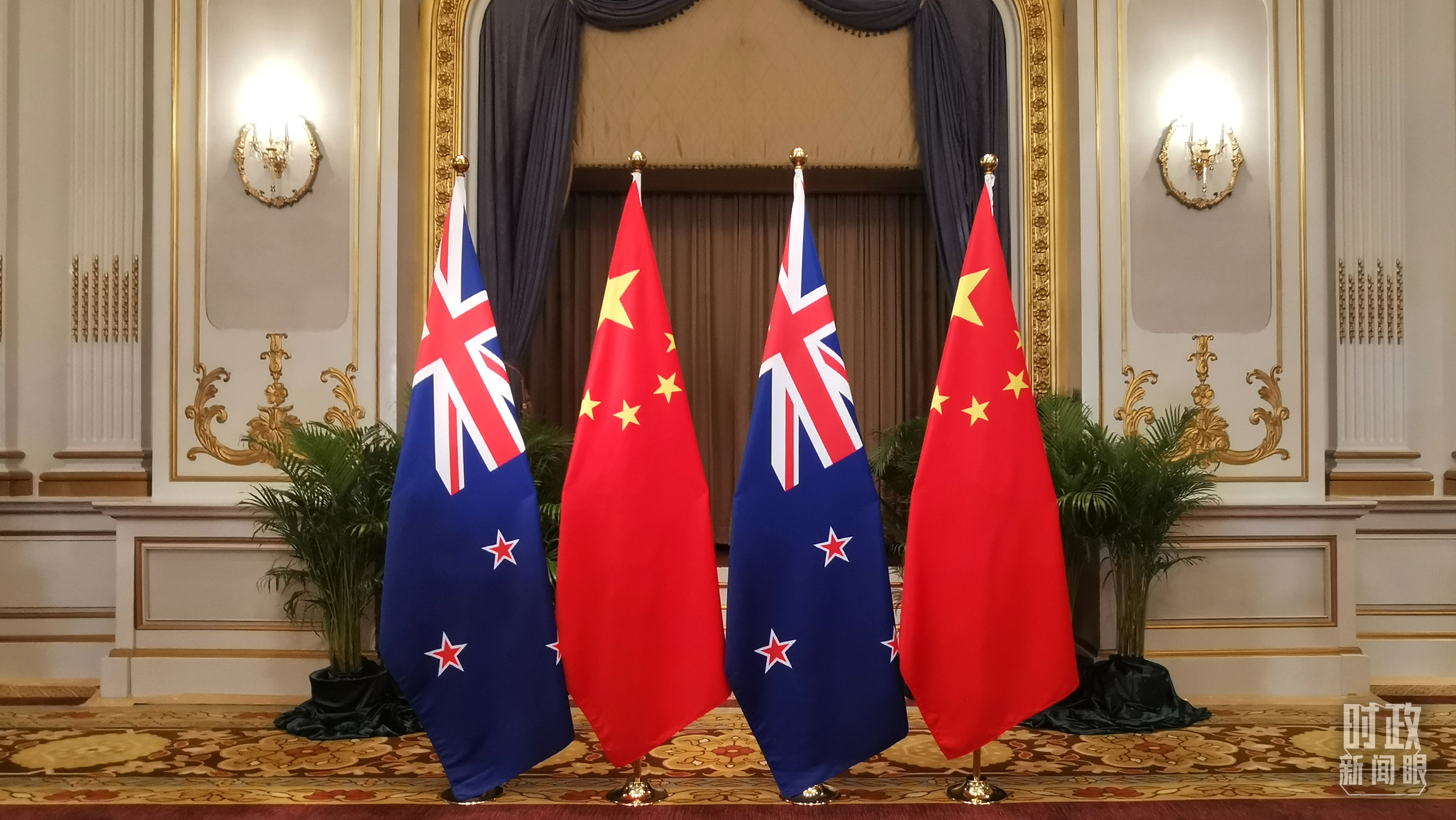 △会见现场的中新两国国旗,新西兰是2021年APEC会议举办国。(总台央广记者刘会民拍摄)