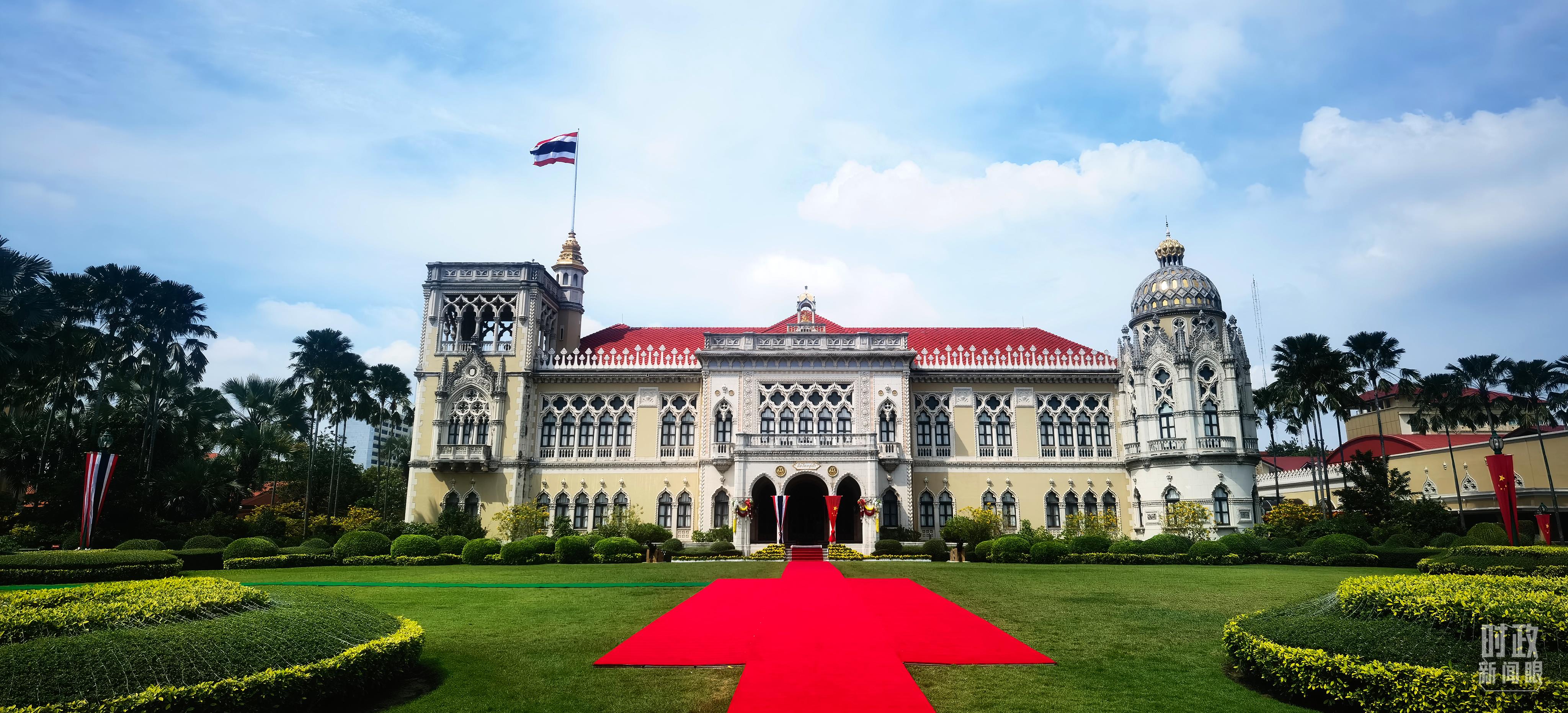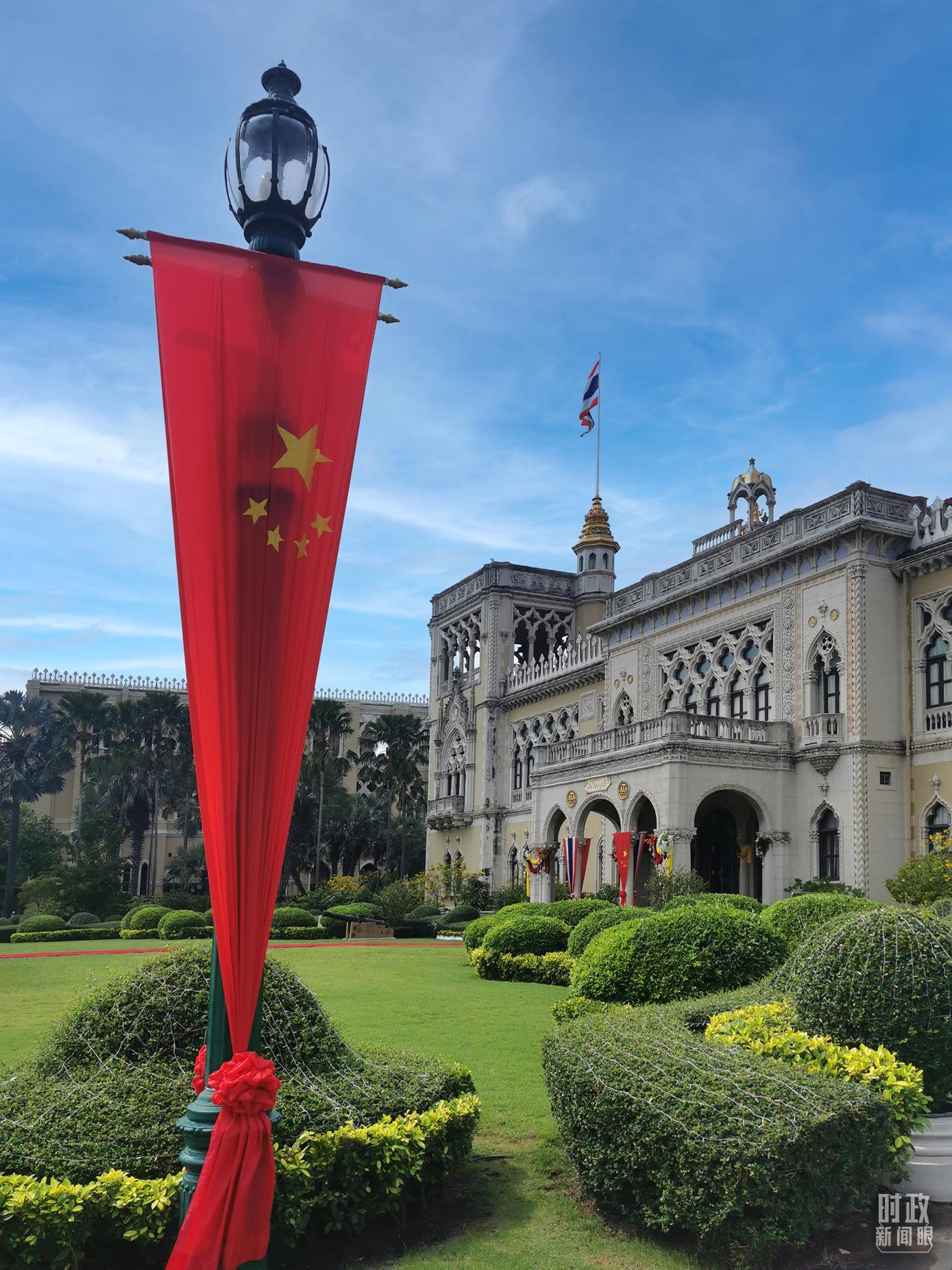 △曼谷总理府前的中国国旗。(总台央视记者黄京辉拍摄)