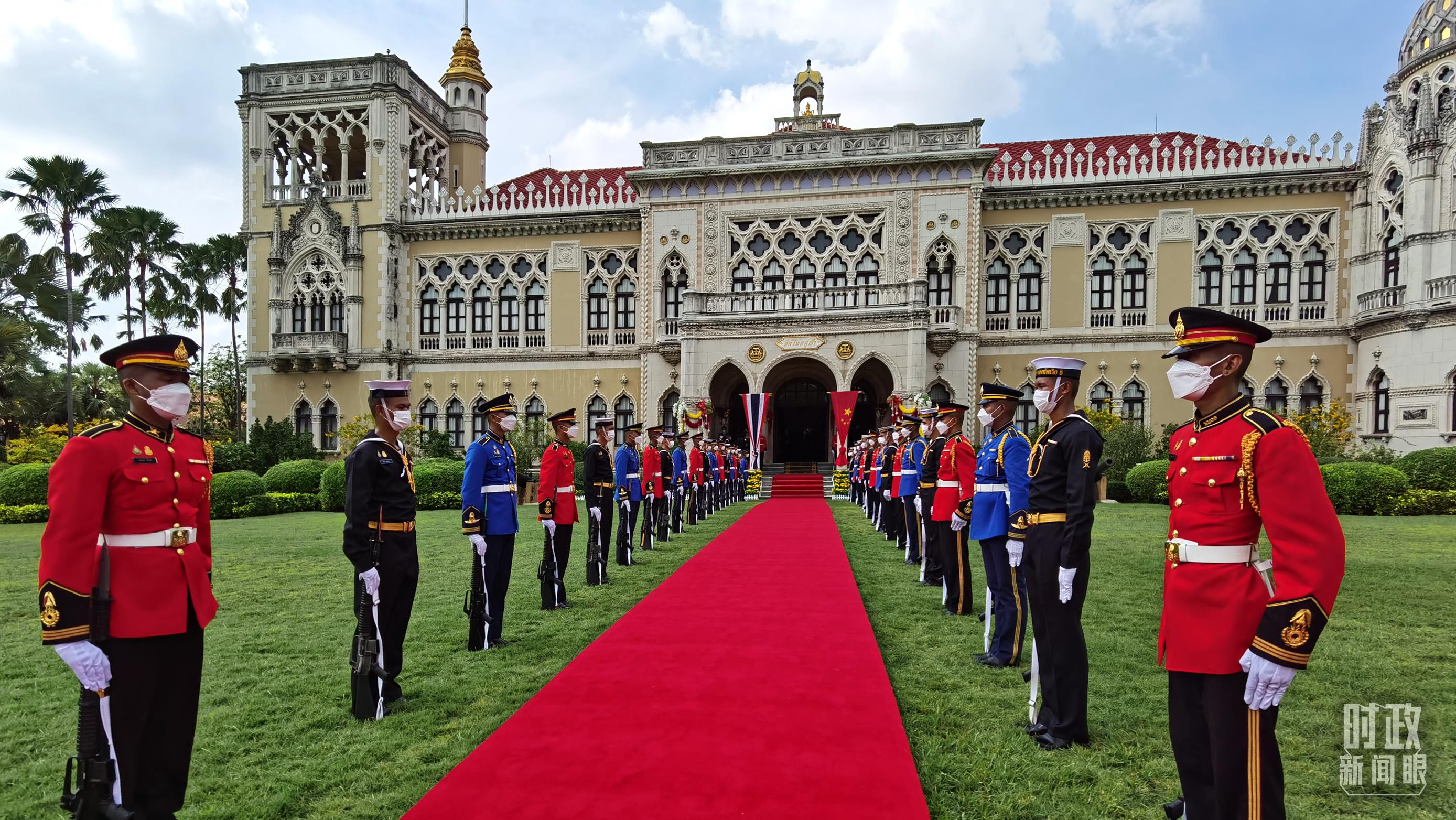 △曼谷总理府前整齐排列的仪仗队。(总台央视记者郭鸿拍摄)