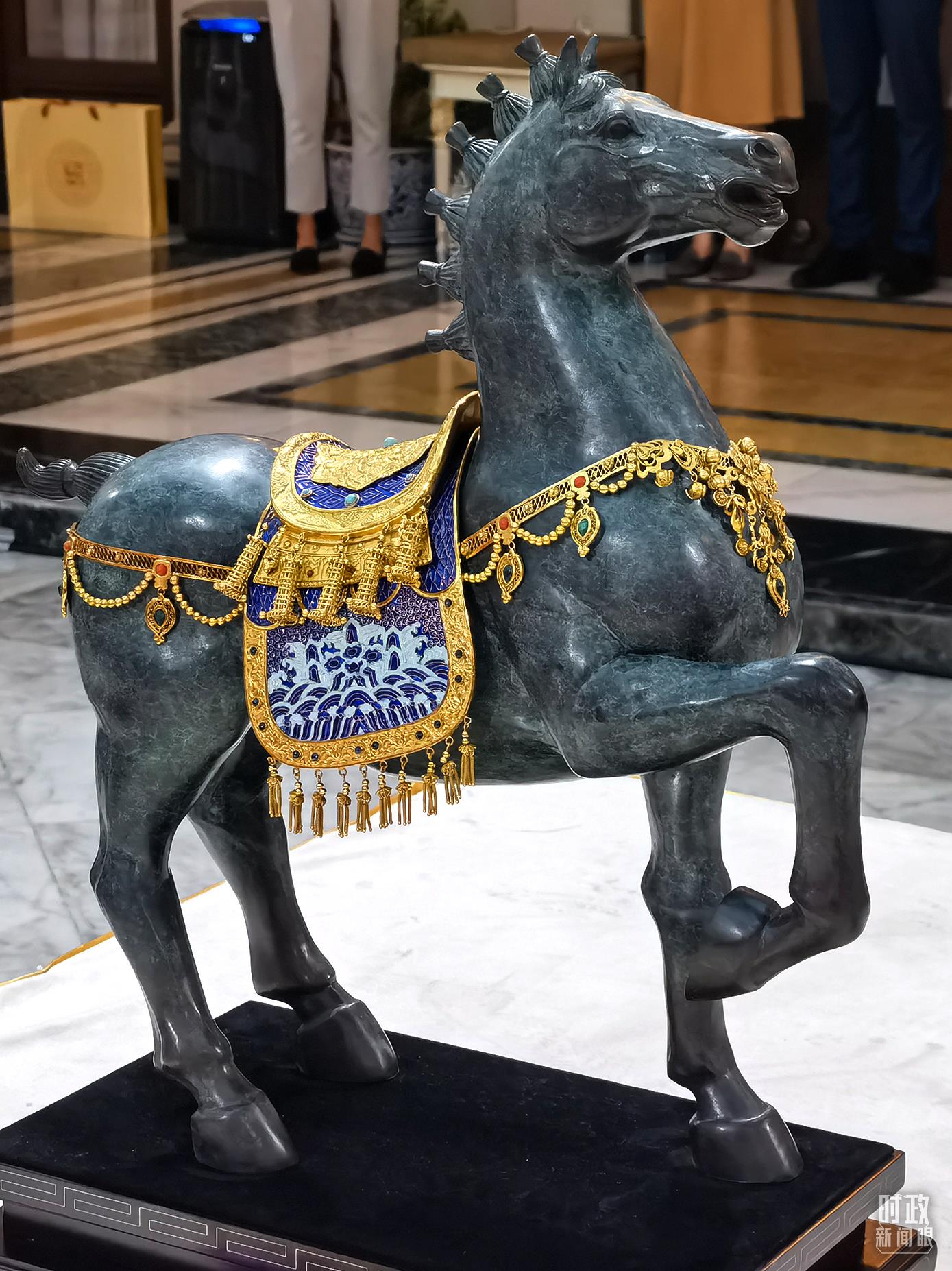 △这是习近平送给巴育的国礼之一,将军马《金玉满堂》。马身装饰以花丝、松石,寓意登高临风、前路畅通。(总台央视记者马超拍摄)