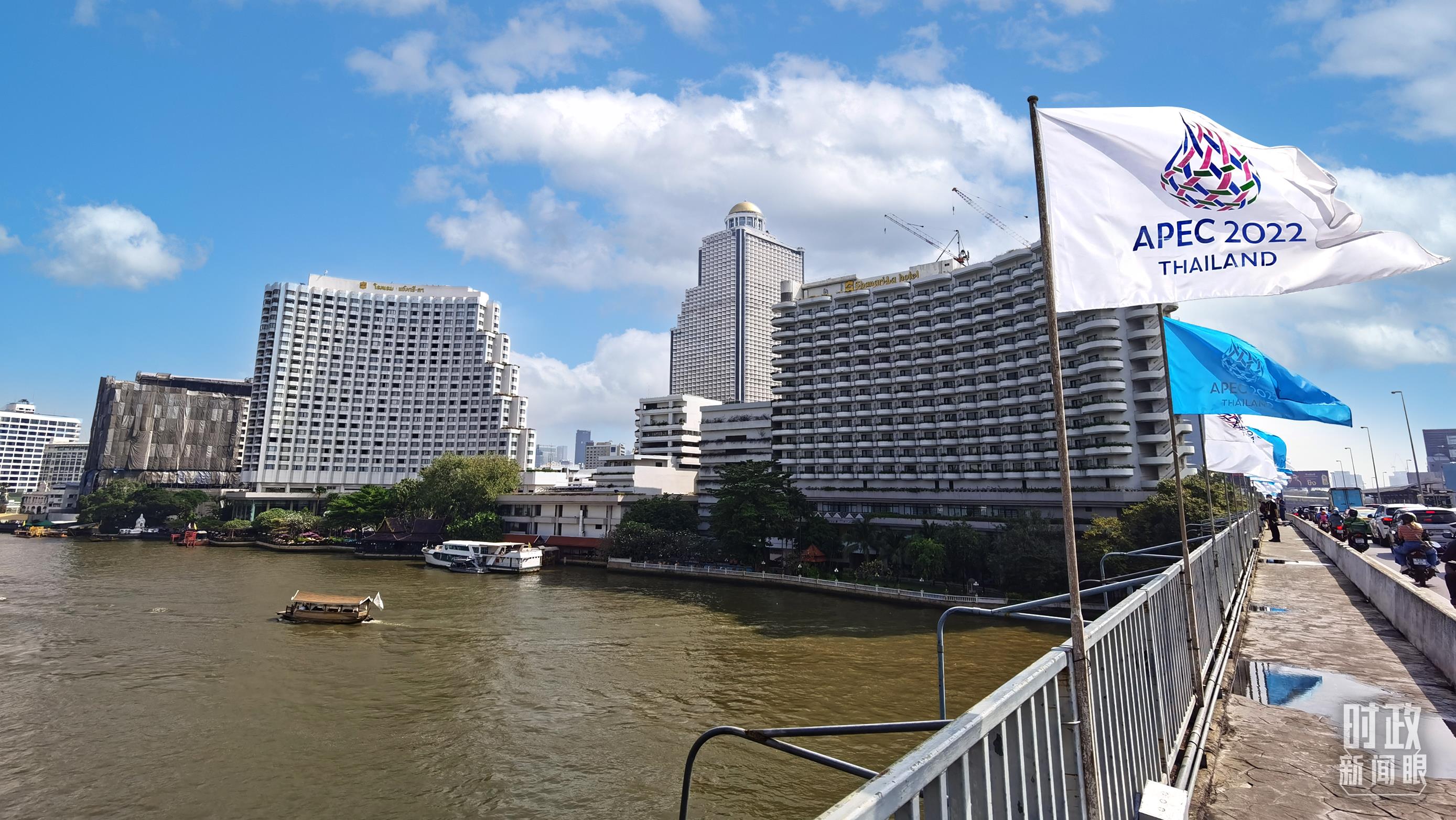 △曼谷,APEC会旗在空中飘扬。(总台央视记者鄂介甫拍摄)