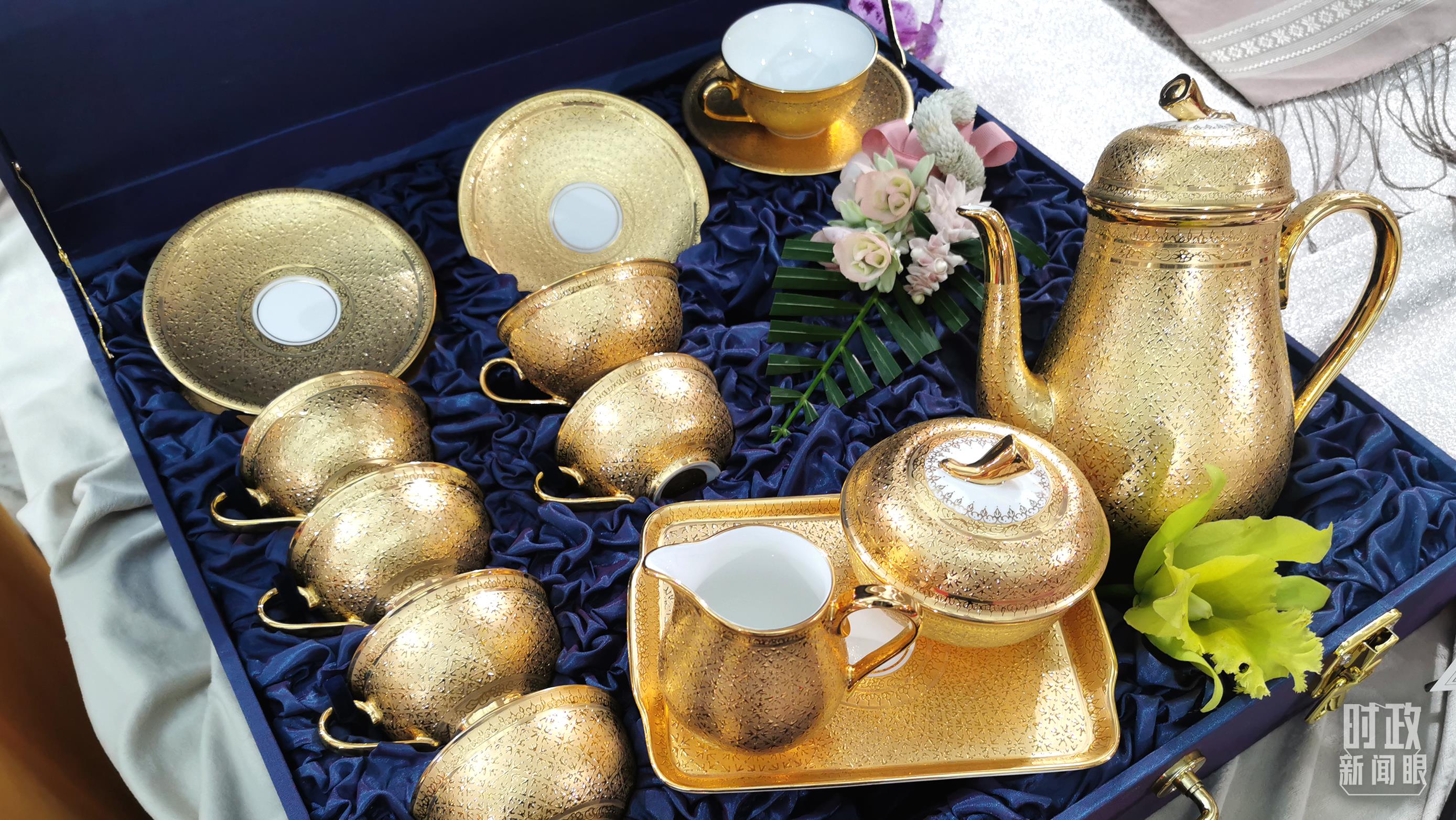 △这是巴育送给习近平的国礼之一,鎏金浮雕纹茶具。茶具采用泰国传统的五彩瓷工艺制作。(总台央视记者黄京辉拍摄)