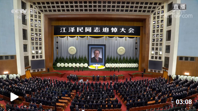 12月6日上午10时,党中央、全国人大常委会、国务院、全国政协、中央军委在北京人民大会堂隆重举行江泽民同志追悼大会。