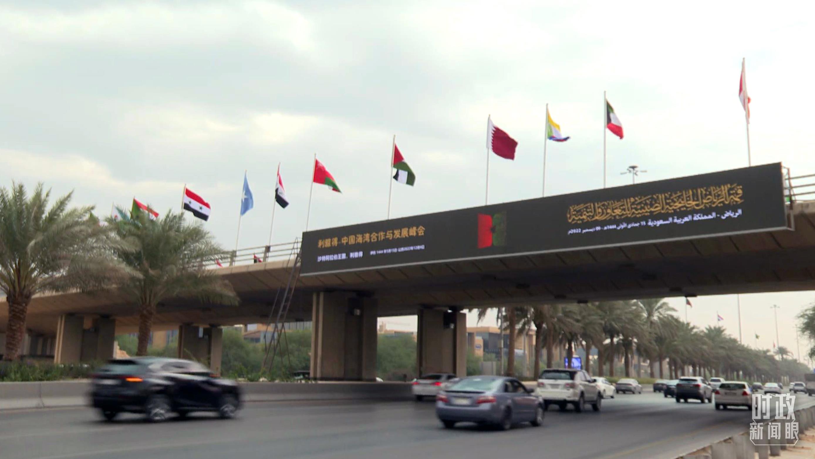 △利雅得,中阿峰会会标展示。