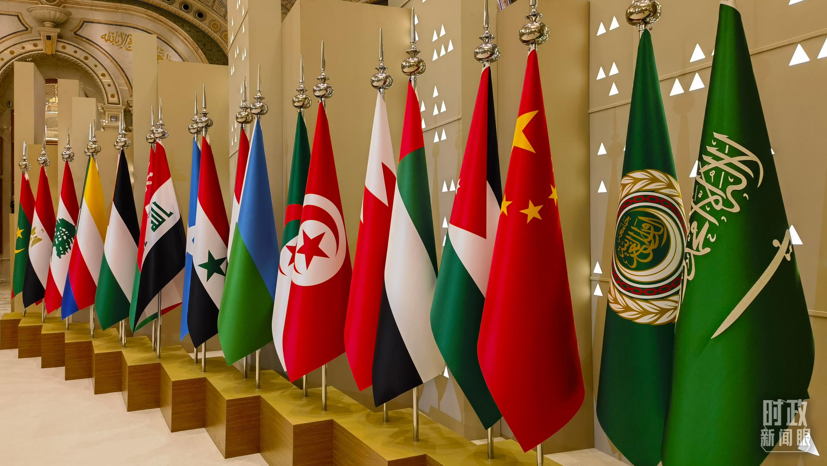 △中阿峰会现场的旗阵。(总台央视记者马超拍摄)