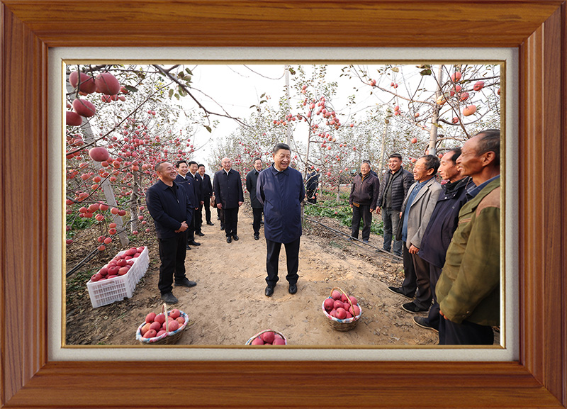 10月26日下午,习近平总书记在陕西省延安市安塞区高桥镇南沟村苹果园同老乡们亲切交流。