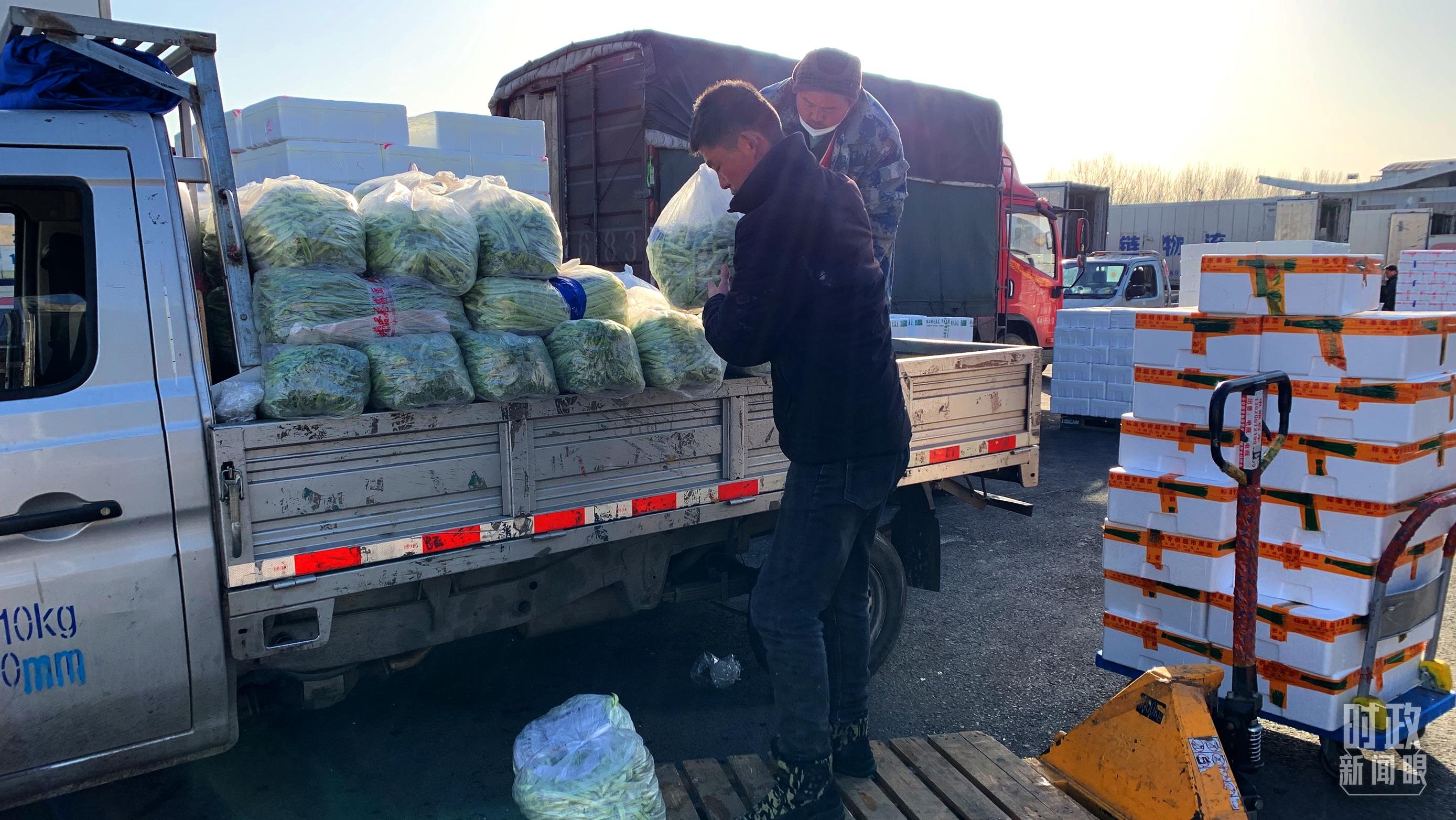 △从鲁德传那里购买豆类蔬菜的分销商正在搬运货物。(总台央视记者刘瑞琳拍摄)
