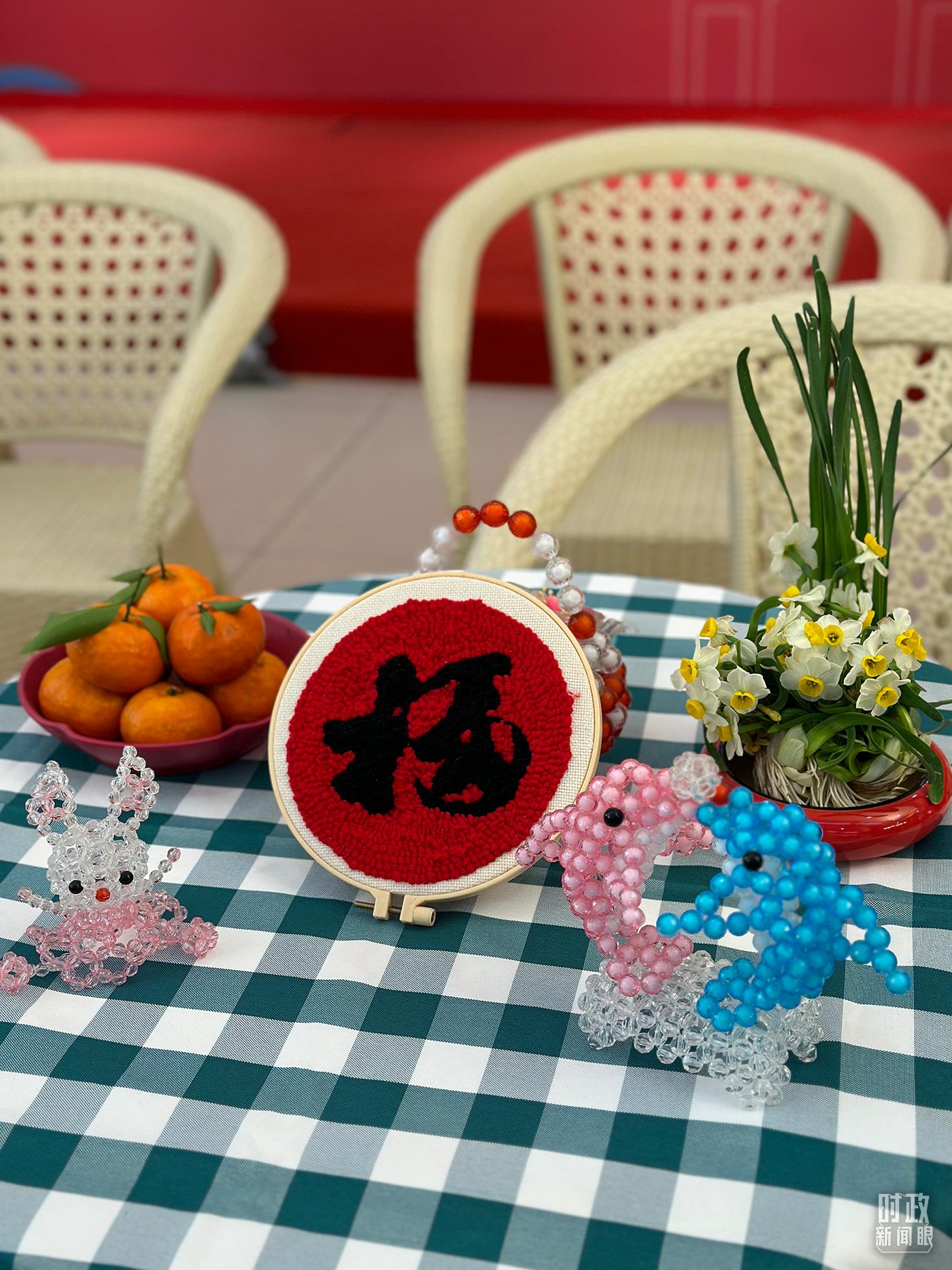 △现场摆放的老人们的手工作品。(总台央视记者耿旭菲拍摄)