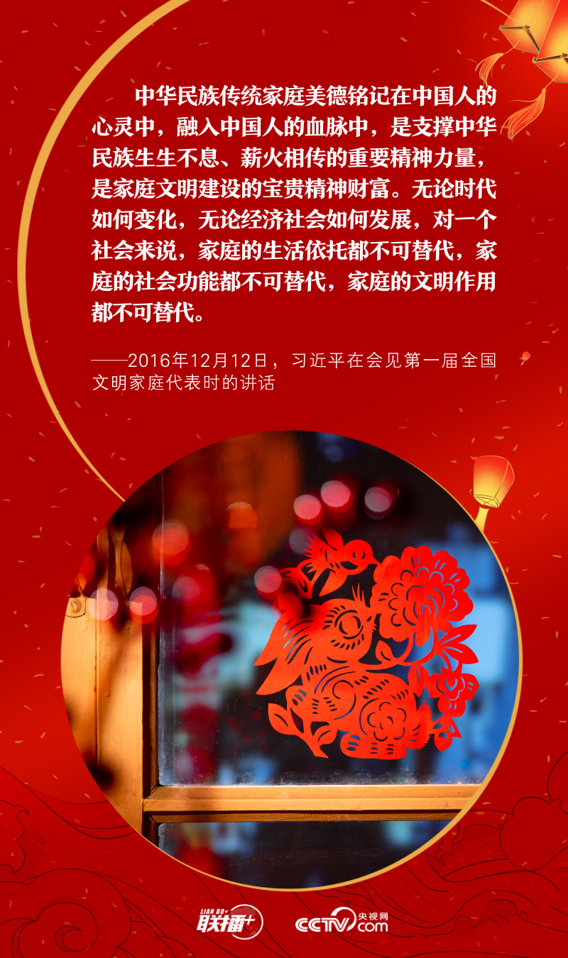 天下之本在国,国之本在家。元宵佳节既是万家团圆、共话美好的日子,也是爱国爱家同频、家国情怀共融的时刻。党的十八大以来,习近平总书记在讲话中多次提到了家庭、家教、家风,深刻阐述了家庭与社会、家庭与国家之间的关系。央视网《联播+》特推出海报,与您一起感悟总书记的家国情怀。