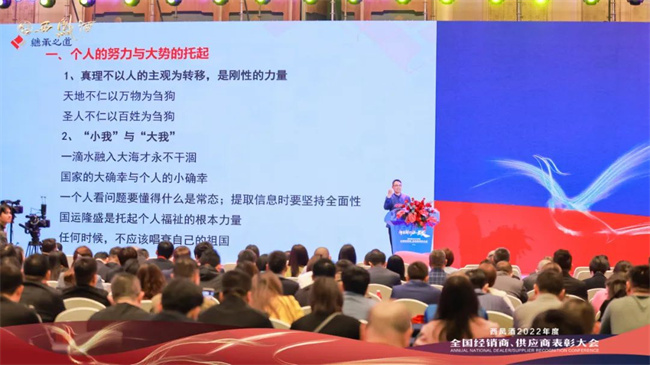 会议宣读了《关于对2022年度优秀经销商、供应商进行表彰奖励的决定》,并对获得年度重大贡献奖、杰出贡献奖、突出贡献奖等奖项的优秀经销商及供应商进行了现场颁奖表彰。