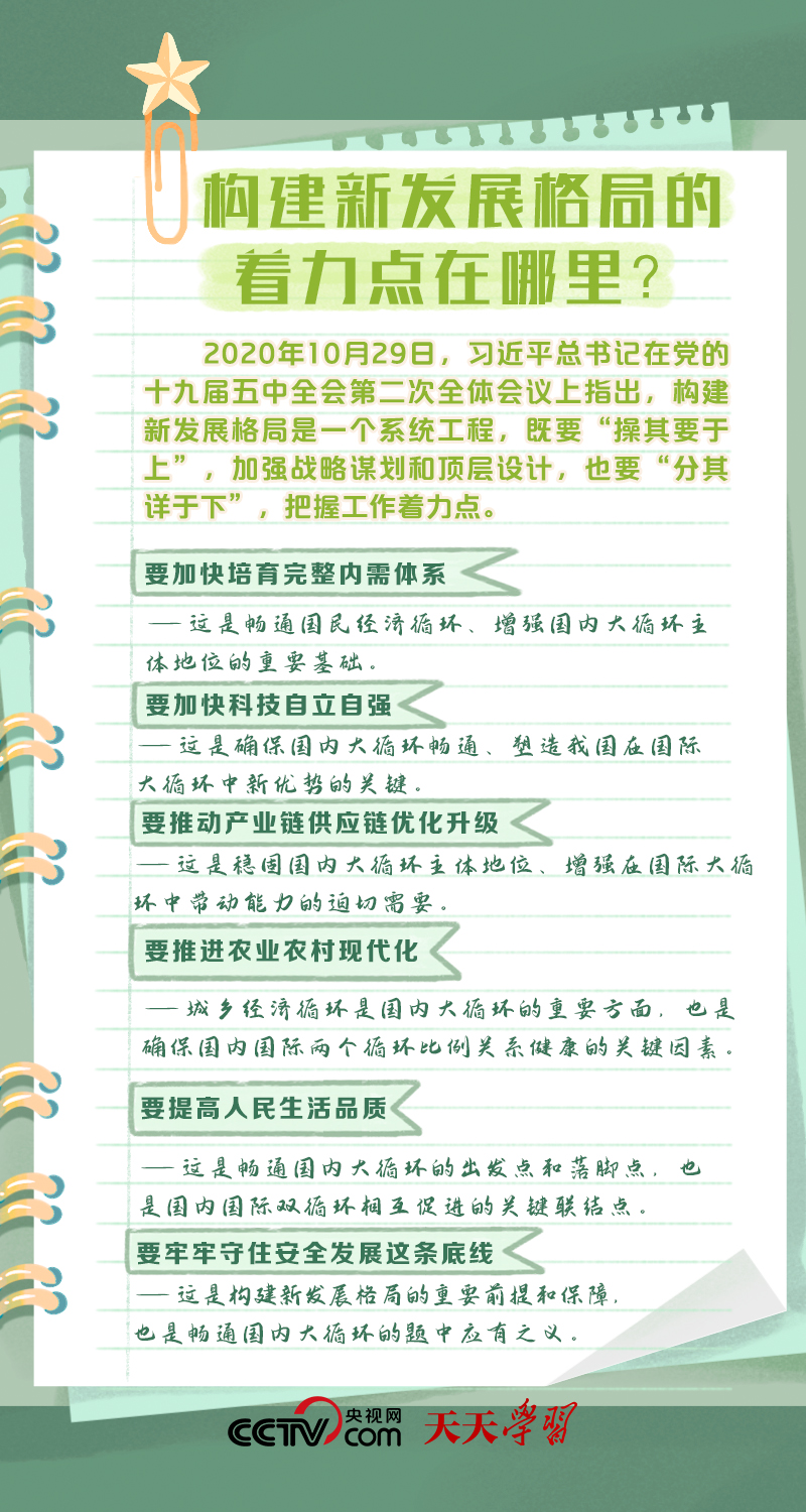 天天学习 构建以国内大循环为主体、国内国际双循环相互促进的新发展格局,是根据我国发展阶段、环境、条件变化,特别是基于我国比较优势变化,审时度势作出的重大决策。构建新发展格局是事关全局的系统性、深层次变革,是立足当前、着眼长远的战略谋划。
