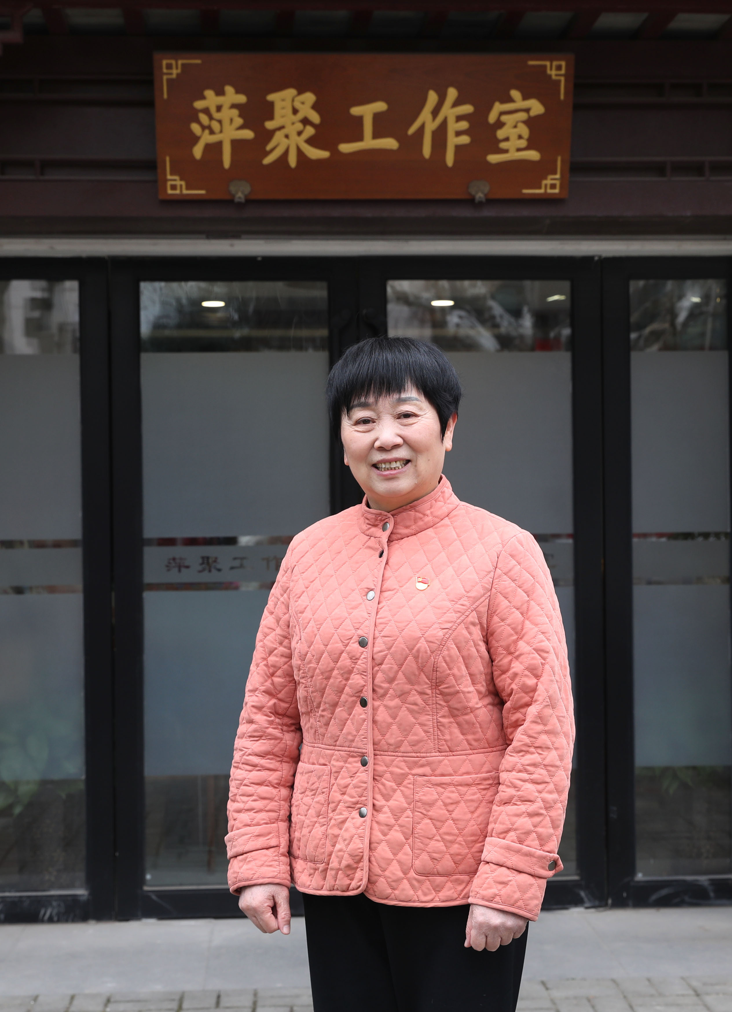 朱国萍在萍聚工作室前(2月21日摄)。新华社记者 刘颖 摄
