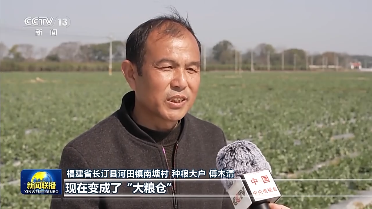 福建省长汀县河田镇南塘村种粮大户 傅木清:去年亩产达到了一千三百多斤,在福建创造了最高产量。就连中科院院士都说,我们这个曾经的水土流失区,现在变成了“大粮仓”,长汀真了不起。