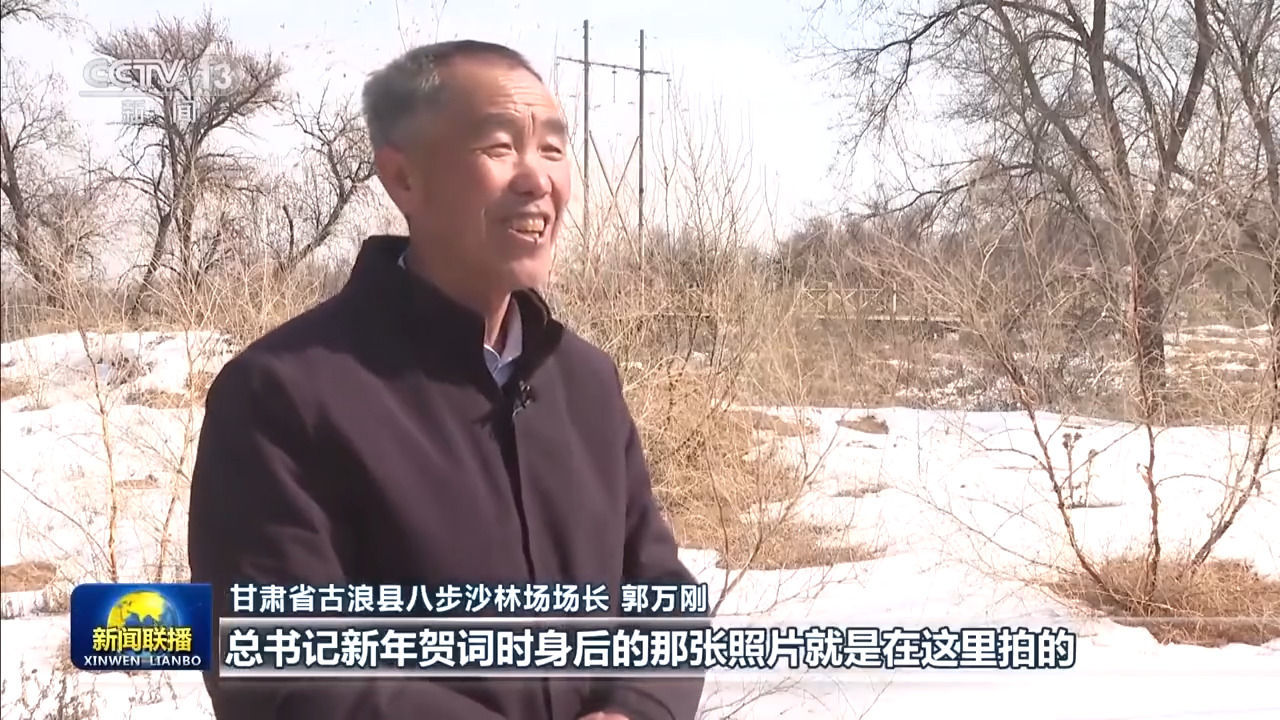 甘肃省古浪县八步沙林场场长 郭万刚:总书记新年贺词时身后的那张照片就是在这里拍的,他叮嘱我们要把身体保护好才能把沙治好,把日子过好,治沙就是为了更好的生活。