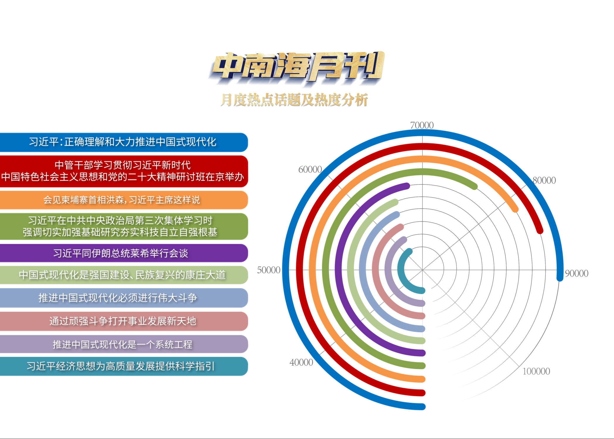 2023年是全面贯彻党的二十大精神的开局之年,是实施“十四五”规划承前启后的关键一年,也是全面建设社会主义现代化国家开局起步的重要一年。央视网“智闻”系统提取分析2023年2月全网时政新闻热点发现,本月“学习贯彻党的二十大精神研讨班开班式”等相关话题备受网友关注。