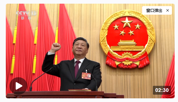 独家视频丨新当选的国家主席、中央军委主席习近平进行宪法宣誓