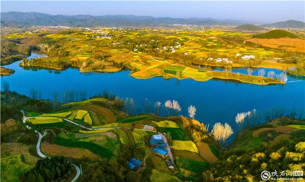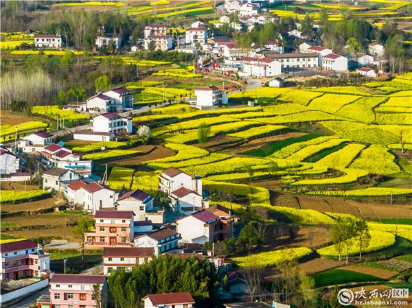 汉中:空中俯瞰油菜花海 春意盎然宛如画卷