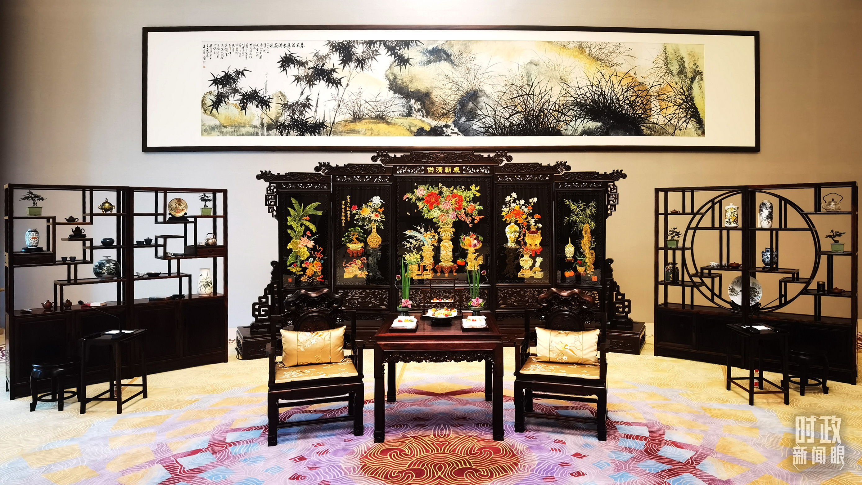 △中法两国元首举行会谈前的现场。(总台央视记者张洛嘉拍摄)