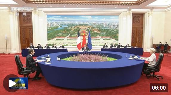 4月6日下午,习近平主席会见了冯德莱恩,并同她和法国总统马克龙一起举行了中法欧三方会晤。