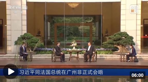 △4月7日,中法两国元首非正式会晤在广州松园举行。(总台央视记者郭鸿拍摄)