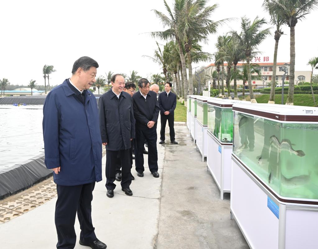 这是习近平总书记4月10日在广东省湛江市国家863计划项目海水养殖种子工程南方基地了解当地发展海洋渔业情况。新华社记者 鞠鹏 摄