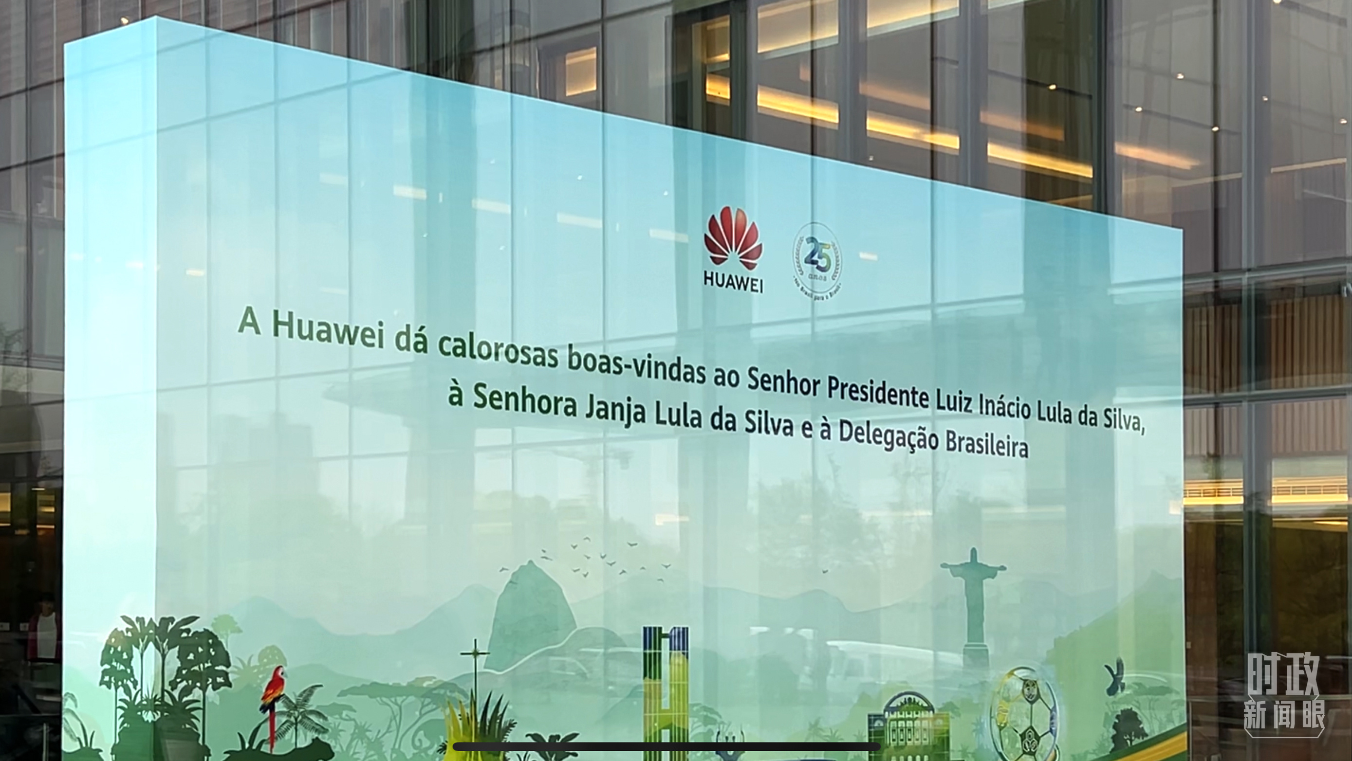 △华为上海研究所内欢迎卢拉总统参观访问的标语。(总台央视记者杨新禹拍摄)