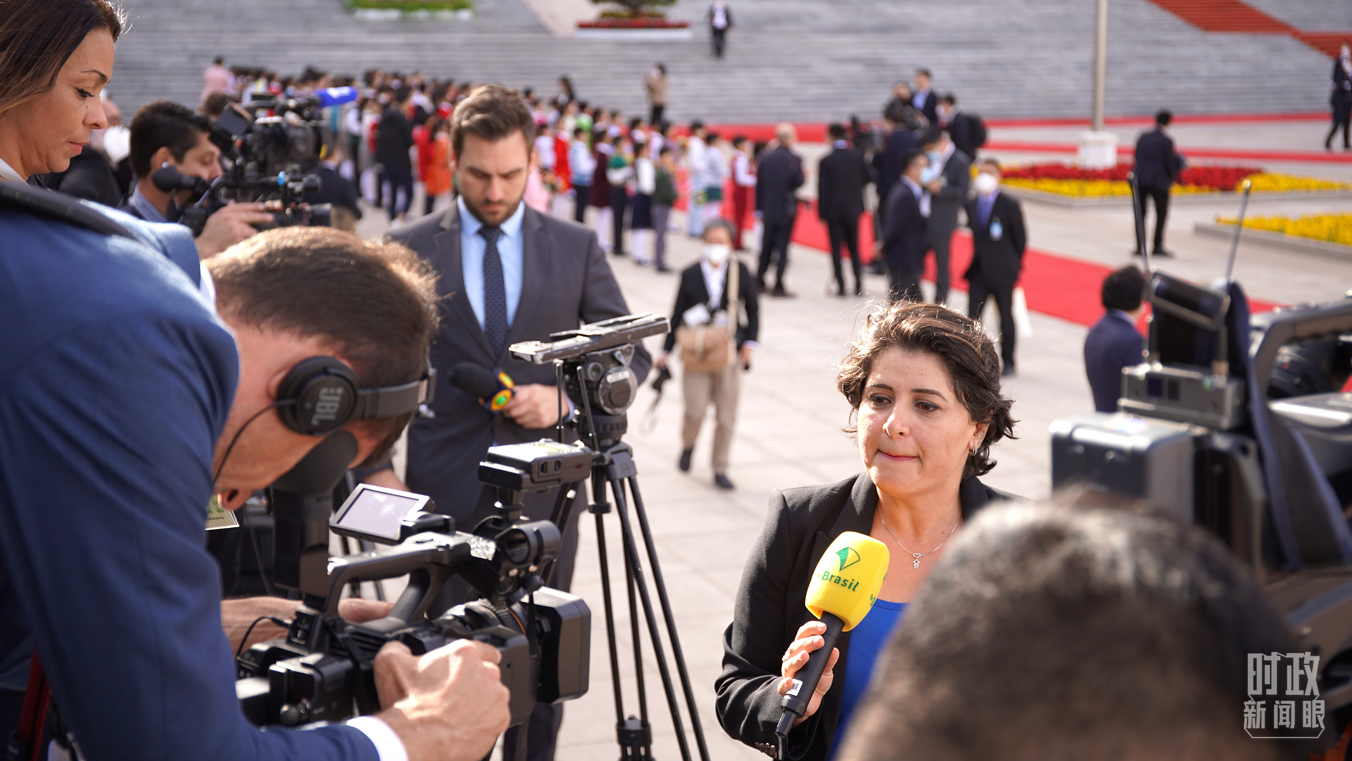 △现场报道欢迎仪式的媒体记者。(总台央广记者潘毅拍摄)