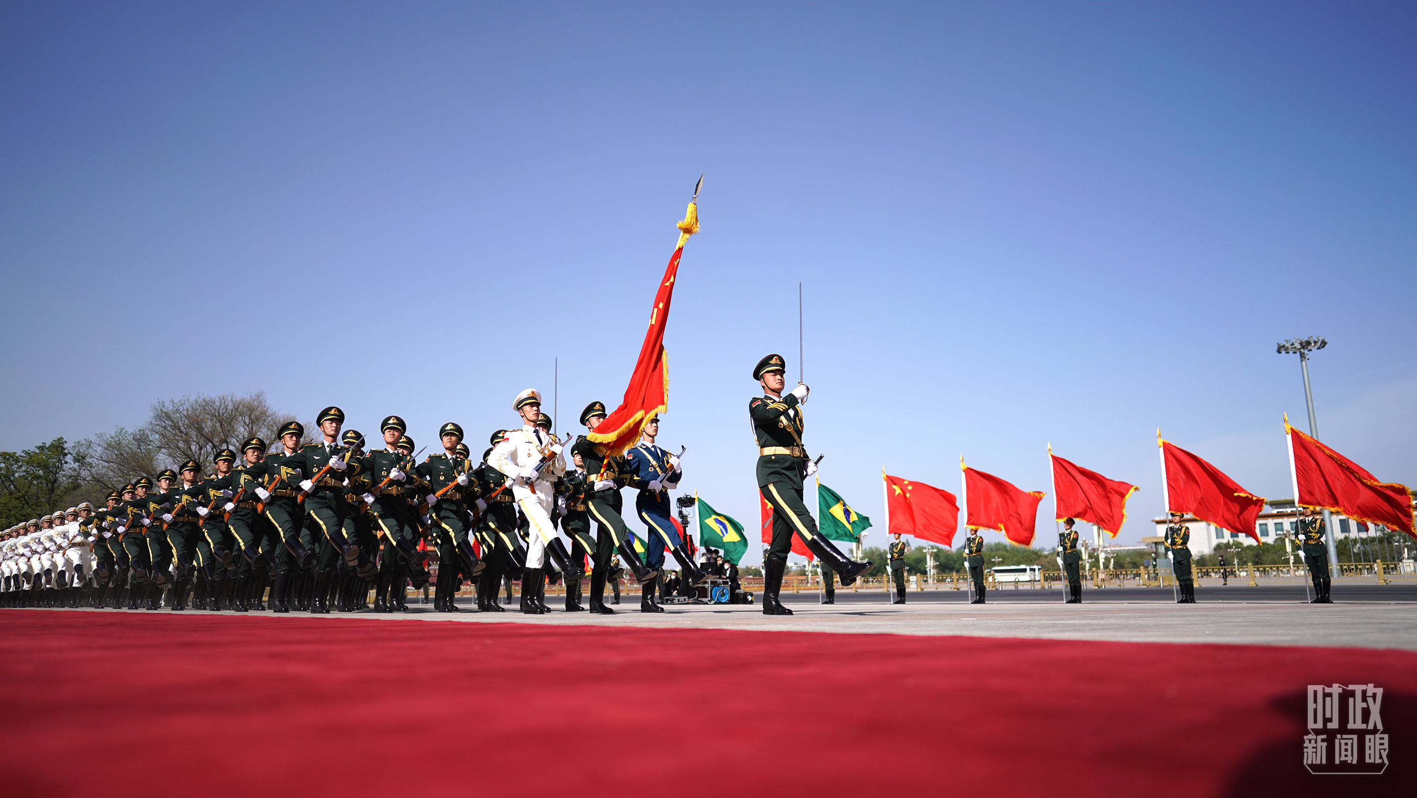 △列队迎接卢拉总统抵达的礼兵。(总台央视记者范一鸣拍摄)