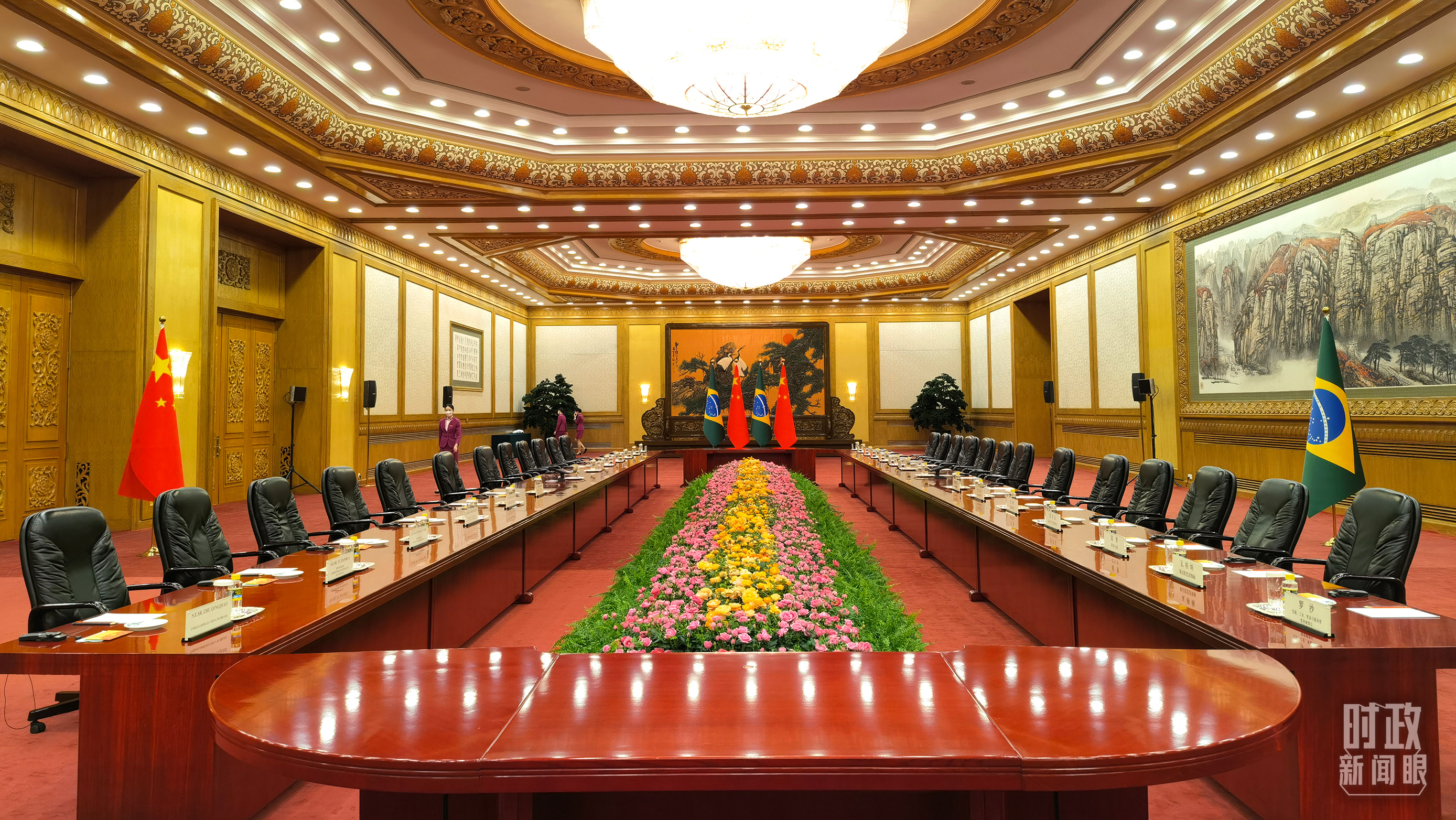 △会谈现场的鲜花。(总台央视记者郁振一拍摄)
